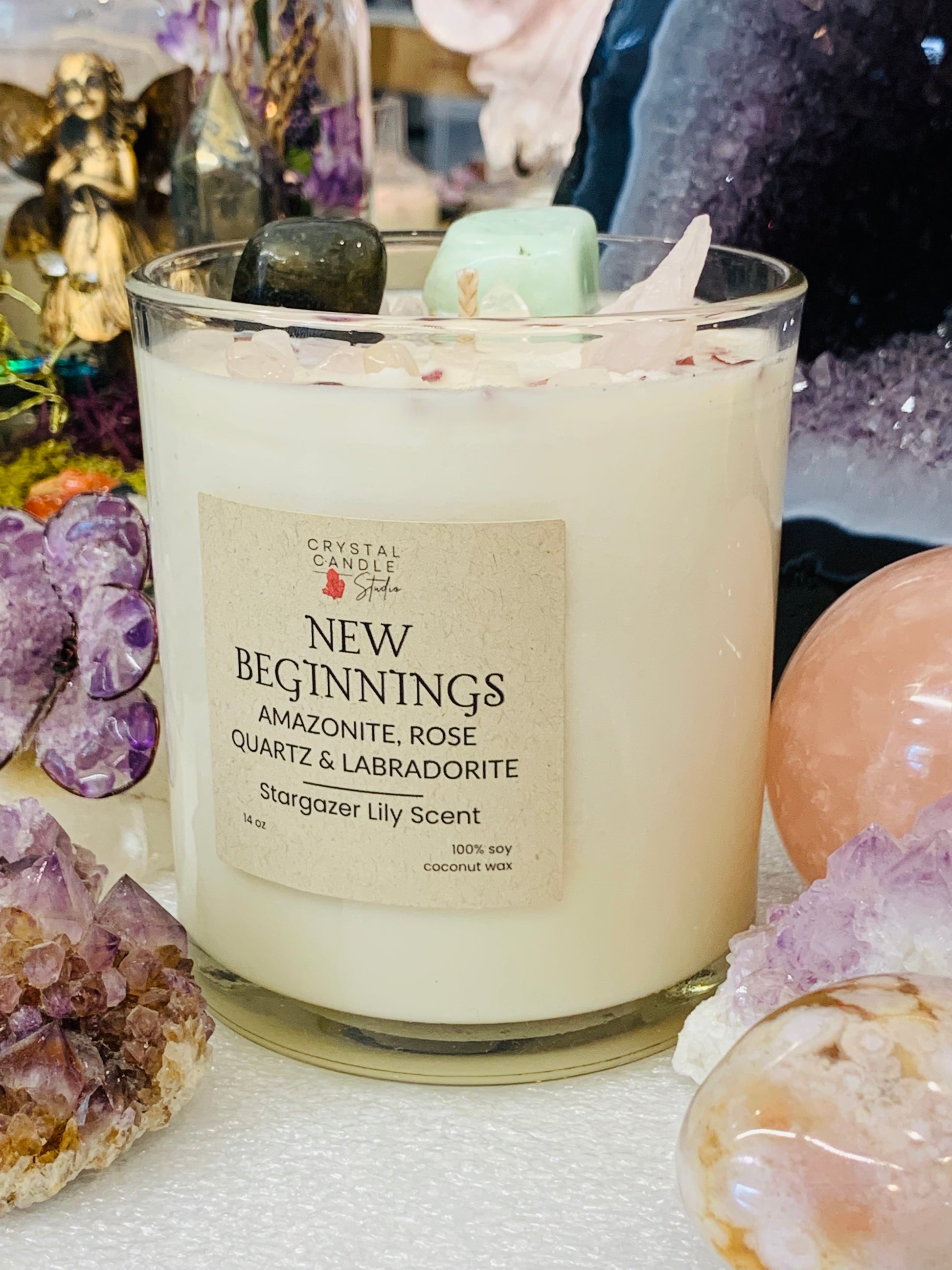🌿 New Beginnings Crystal Candle – A Fresh Start